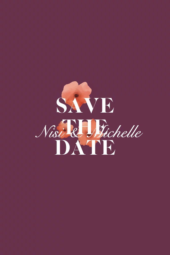 Schlichte Save the Date Karte in Lila mit Mohnblumen + Silberfolierung