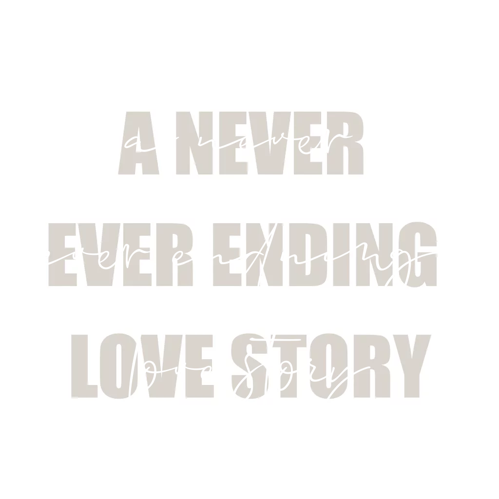 Elegante, schlichte Save the Date Karte mit Spruch "a never ever ending love story" in den Farben weiß und beige.