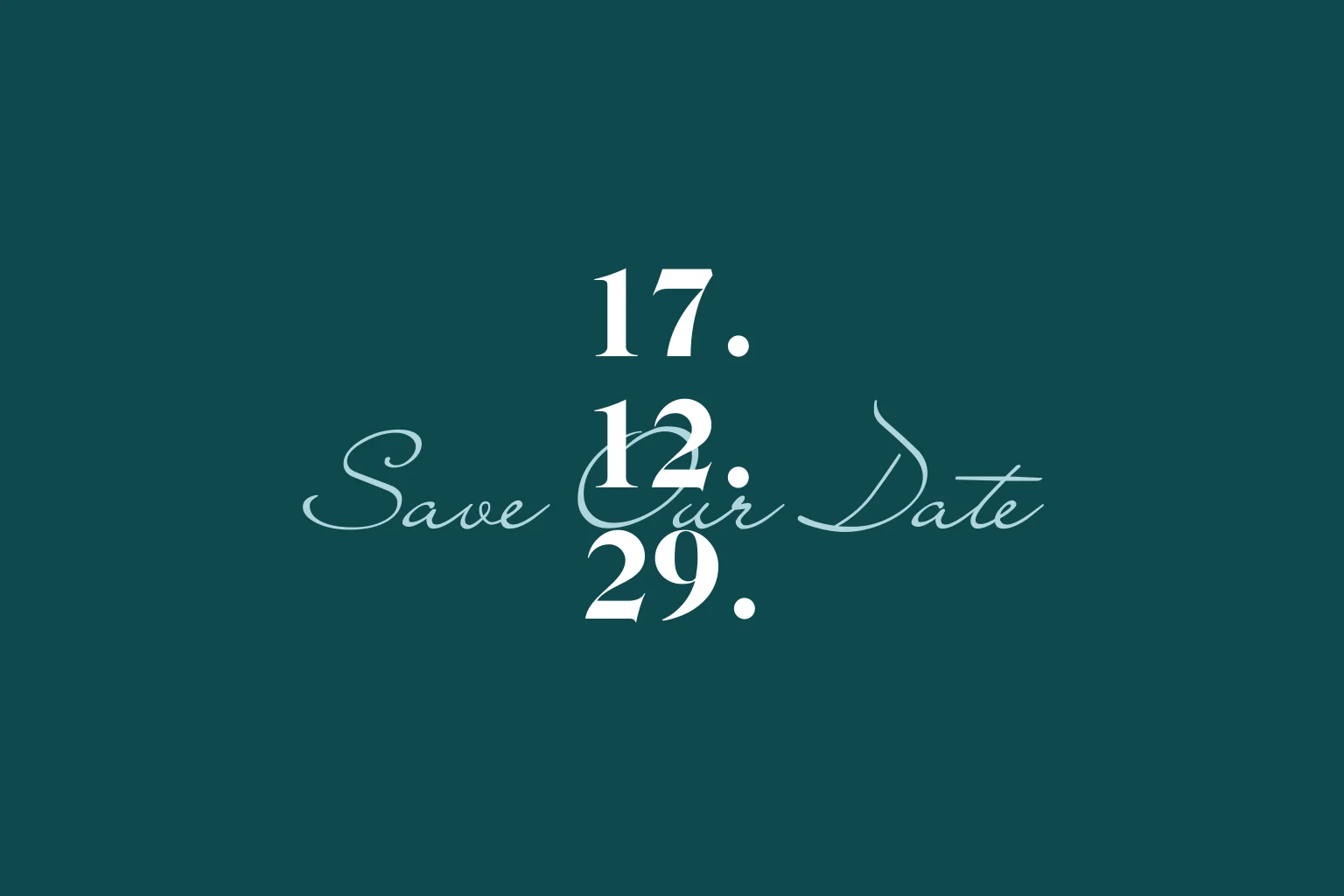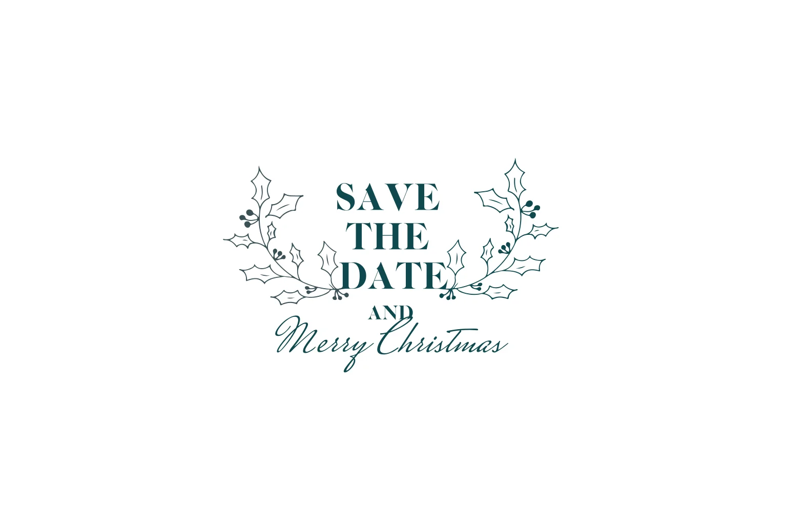 Weihnachtliche Save the Date Karte mit Mistelzweig in dunkelgrün