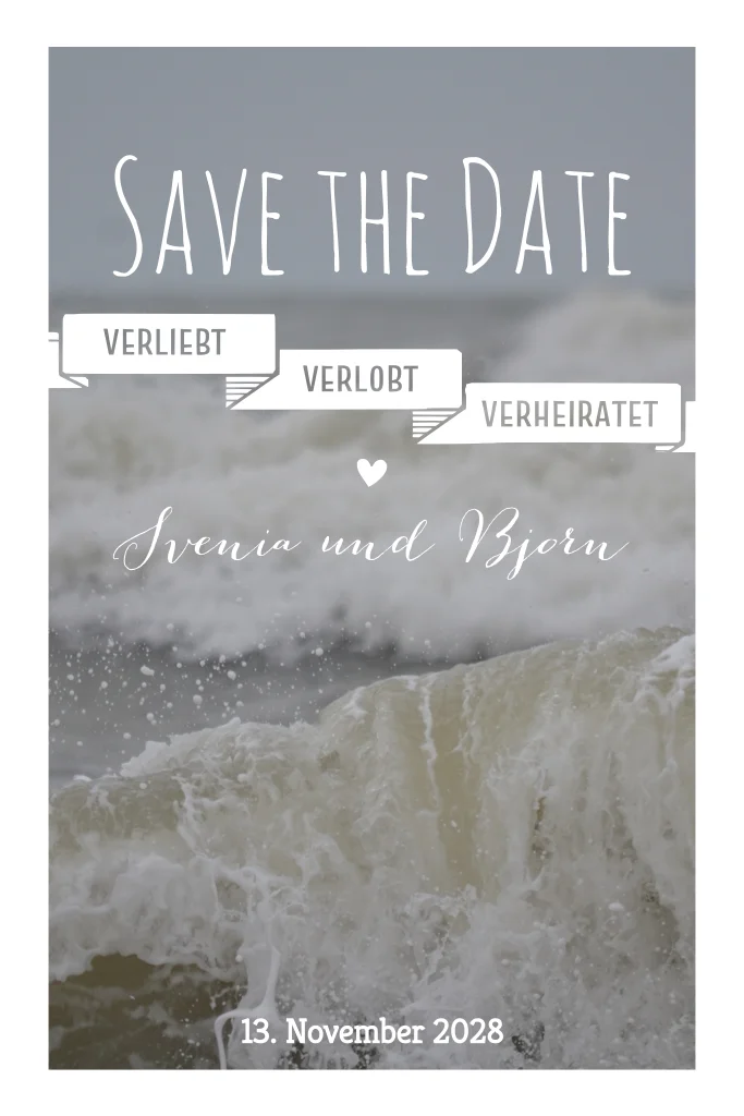 Save the Date Karte für Meeresfreunde. Diese erfrischende Karte wird Wellen bei Euren Hochzeitsgästen schlagen.