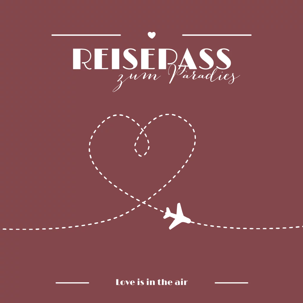 Quadratische Save the Date Karte als Reisepass - Love is in the air - in rot. Jetzt gestalten!