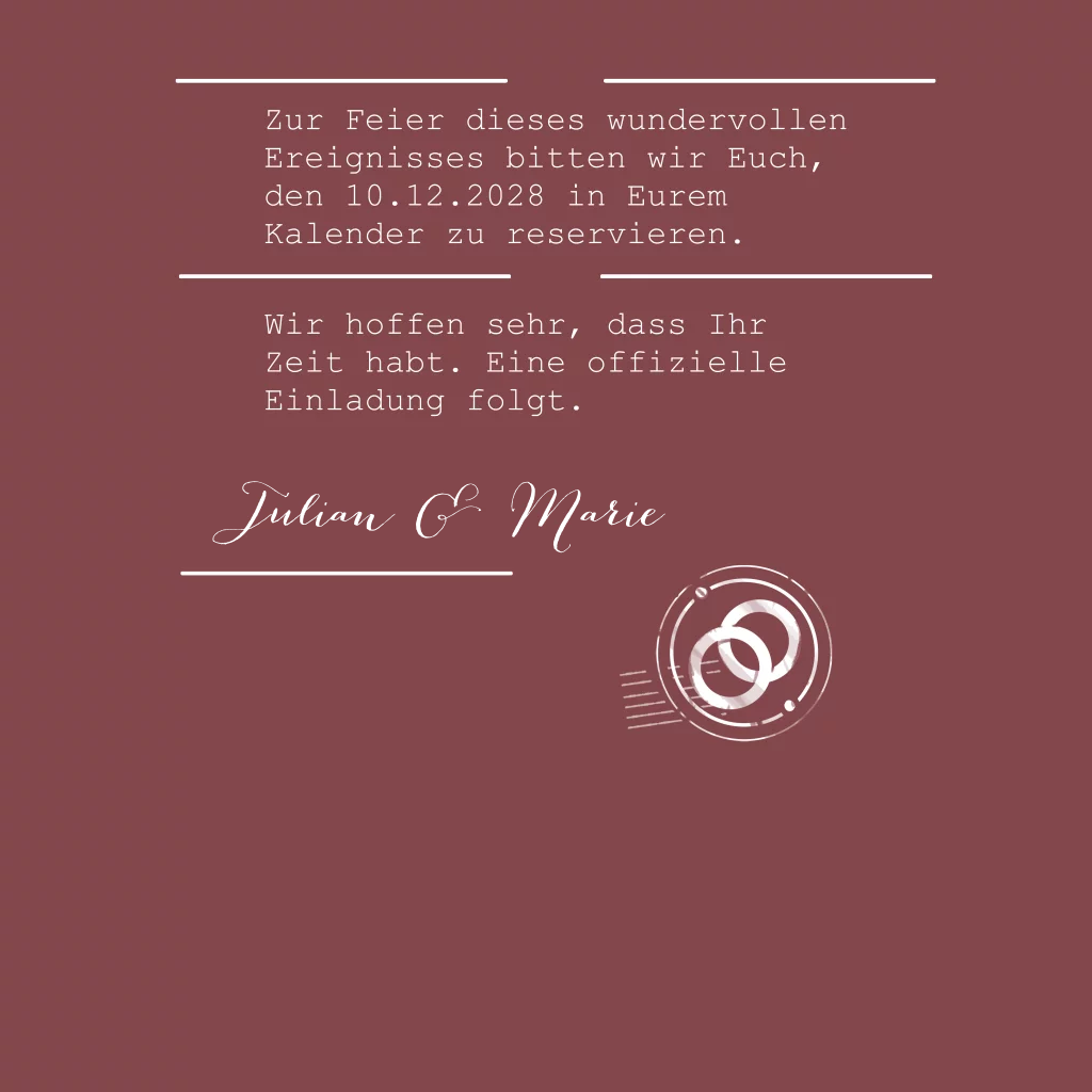Save the Date als Reisepass - Love is in the air - in Weinrot