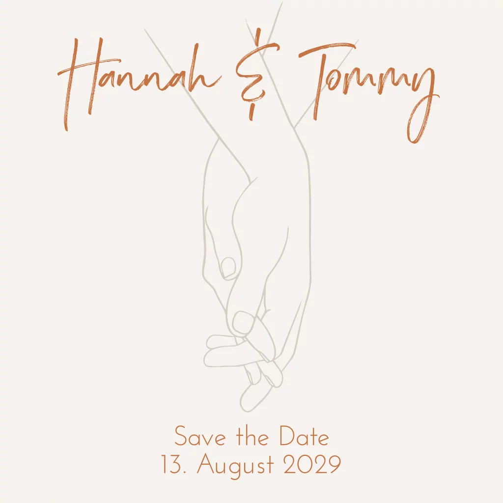Quadratische Save the Date Karte mit Line Art Händen und Kupfer