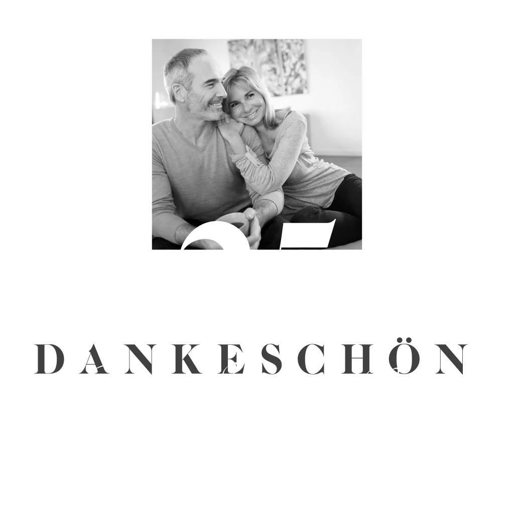 Schlichte quadratische Danksagung zum 25. Jubiläum mit Foto und veredelter silberfarbener 25.