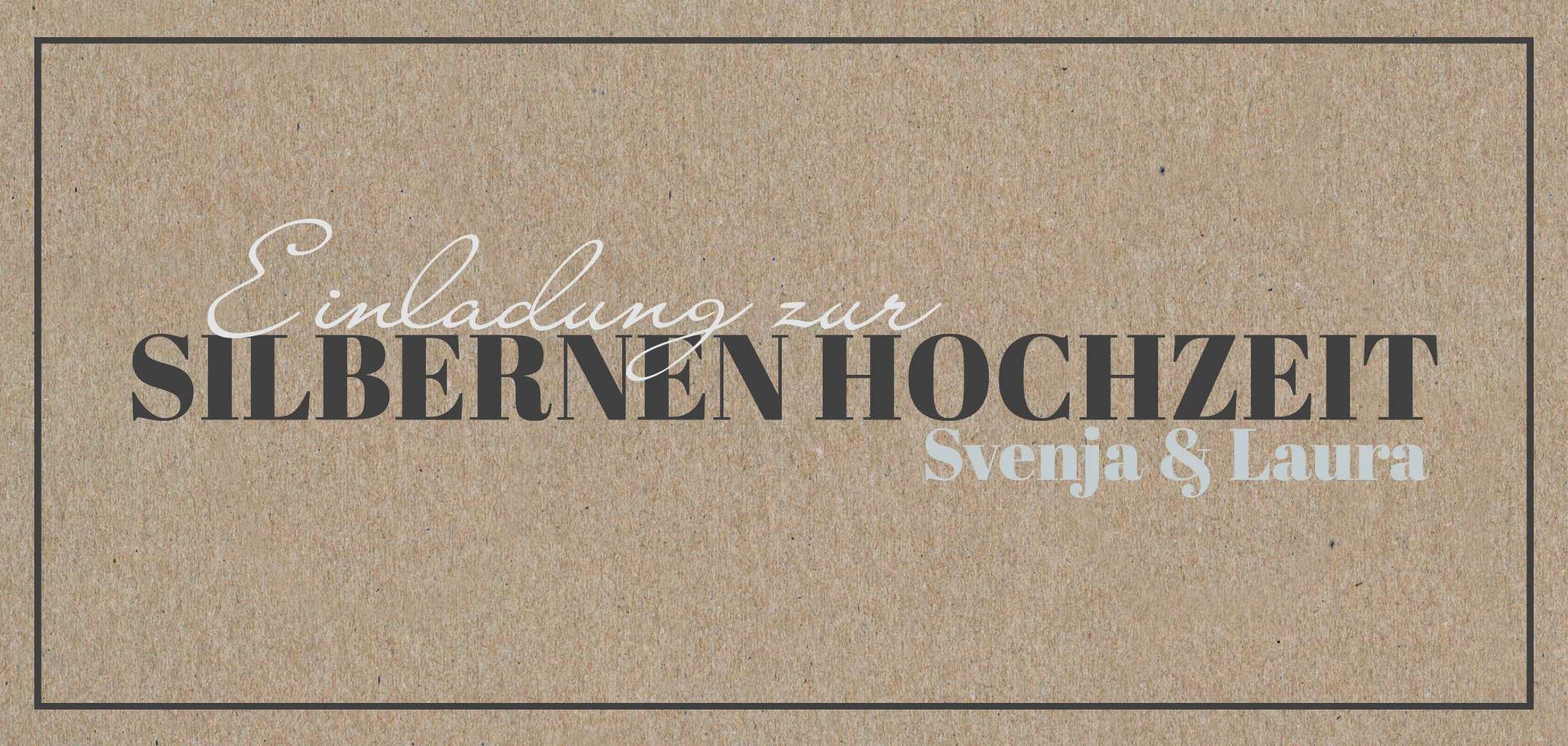 Schlichte Einladung zur Silberhochzeit aus Kraftpapier mit Rahmen