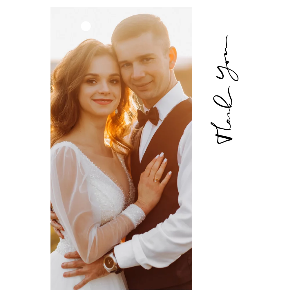 Schlichte Danksagungskarte zur Hochzeit mit Foto und Anhänger im Handlettering Stil. Die moderne, weiße Karte besteht aus zwei Teilen und kann durch eine Kordel verbunden werden. (Dieses Produkt muss extra bestellt werden.)