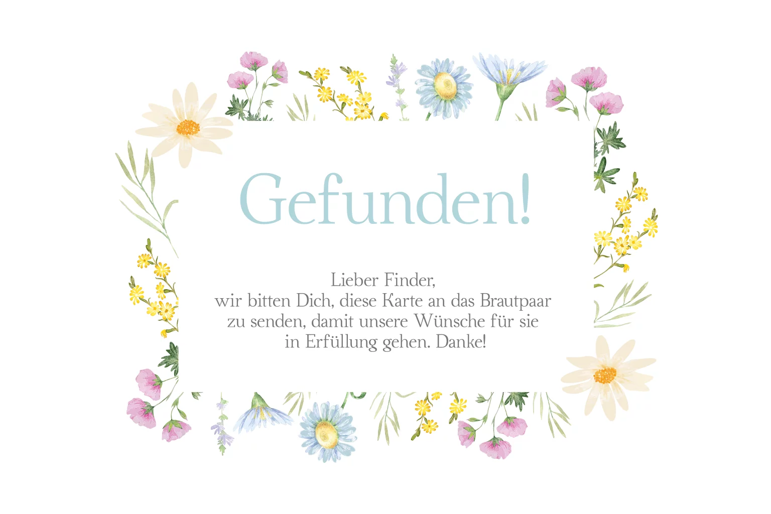 Ihr möchtet gerne Post nach der Hochzeit erhalten? Dann lasst mit euren Gästen diese Ballonkarte in die Lüfte steigen! Die Kombination der Blumen und des farbenfrohen Designs machen diese Ballonflugkarte zu einem echten Hingucker. Die Karte ist perfekt für einen besonderen Anlass, wie Hochzeit oder Jubiläum.