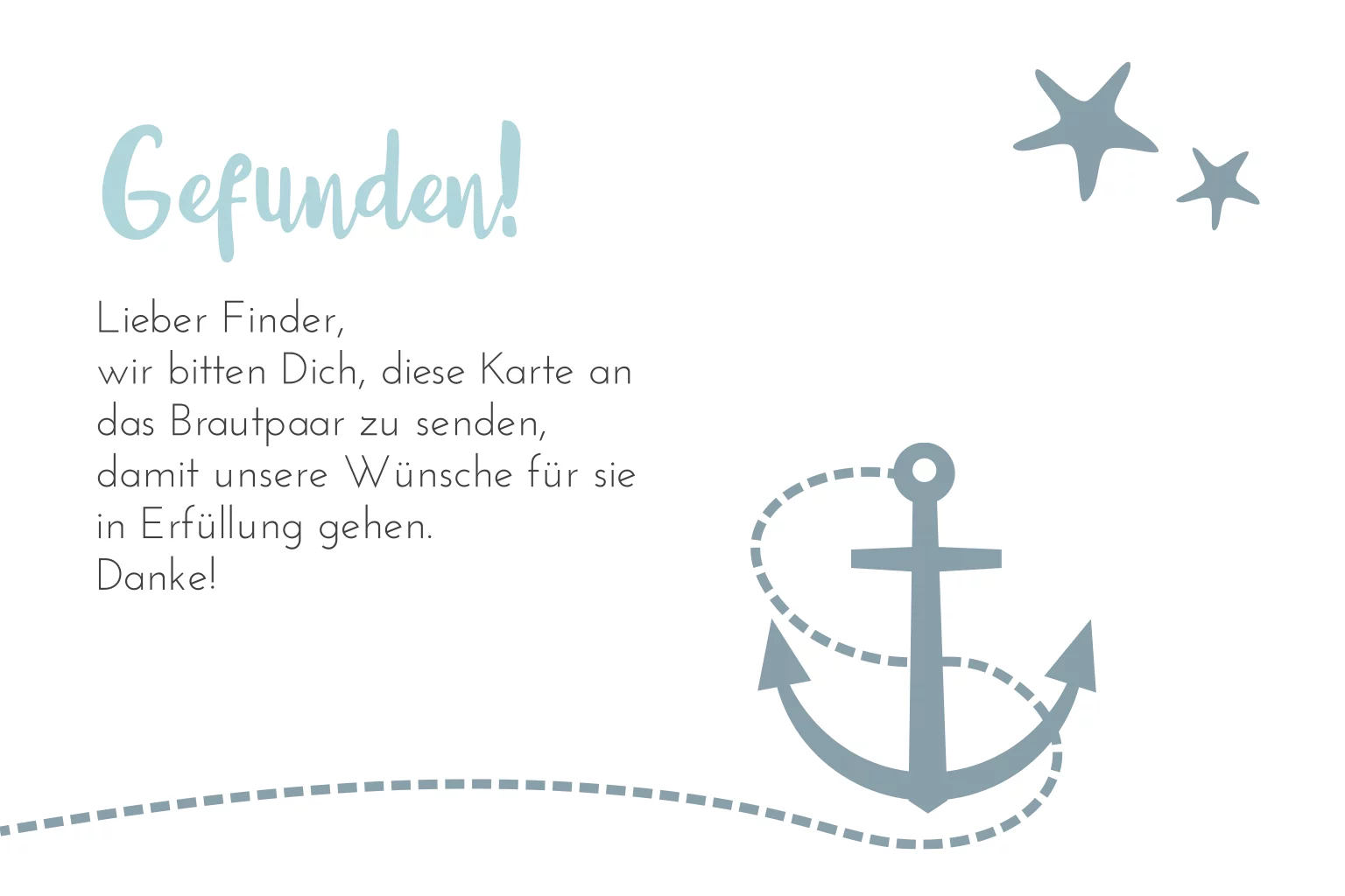 Maritime Ballonkarte zur Hochzeit mit Anker und Seestern in blau weiß