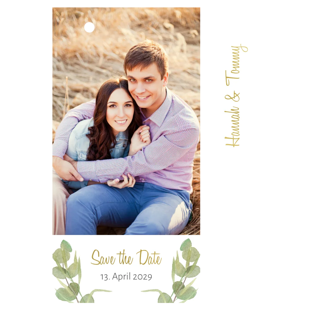Zweiteilige Save the Date Karte im Greenery Look mit Foto + Goldfolie