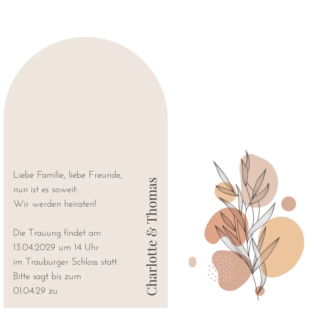 Zweiteilige Hochzeitseinladung im Greenery Boho Stil in beige + orange