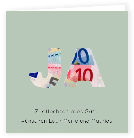 Schlichte, graugrüne Geldgeschenkkarte zur Hochzeit mit Ja Stanzung