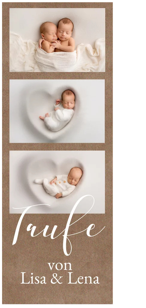 Taufeinladung im Fotostreifendesign auf Kraftpapierlook
