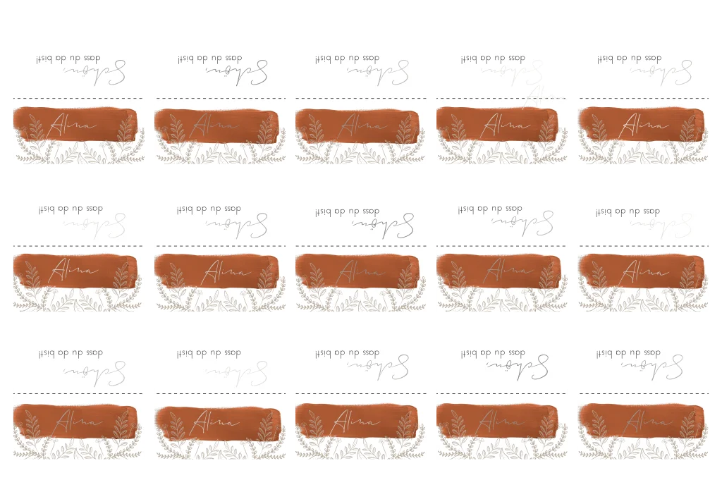 Geklappte Boho Tischkarte zur Hochzeit mit Pinselstrich