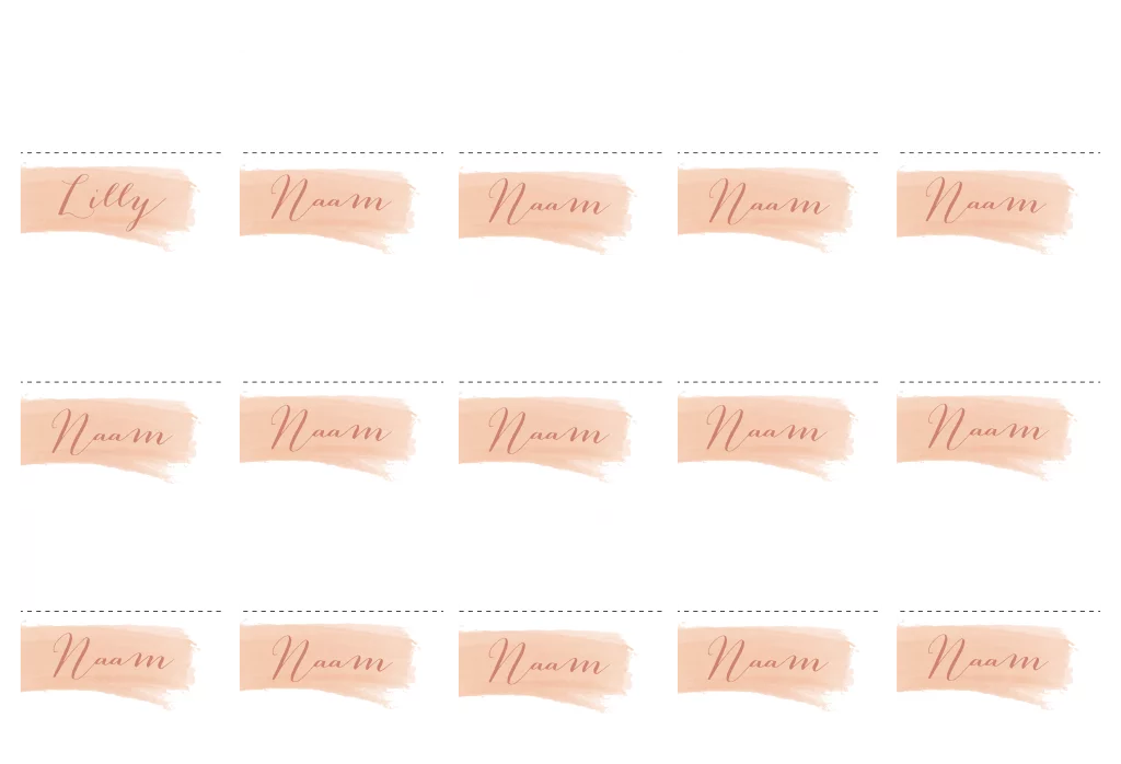 Schlichte Tischkärtchen in weiß mit Aquarell Pinselstrich in Apricot. Die 15 Tischkarten in 8x4 cm sind zum selbst falten.
