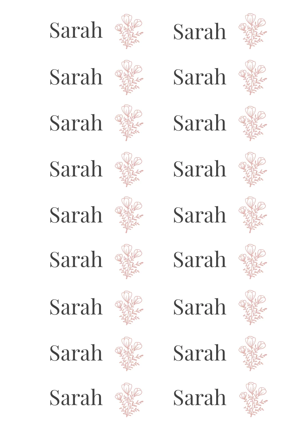 Einfache weiße Tischkarten zur Hochzeit mit altrosaner Blume in 8x3 cm. Auf einem Blatt befinden sich 18 Namenskärten. Bitte trefft eine Vorauswahl über die Anzahl der benötigten Blätter á 18 Kärtchen vor Beginn der Gestaltung.