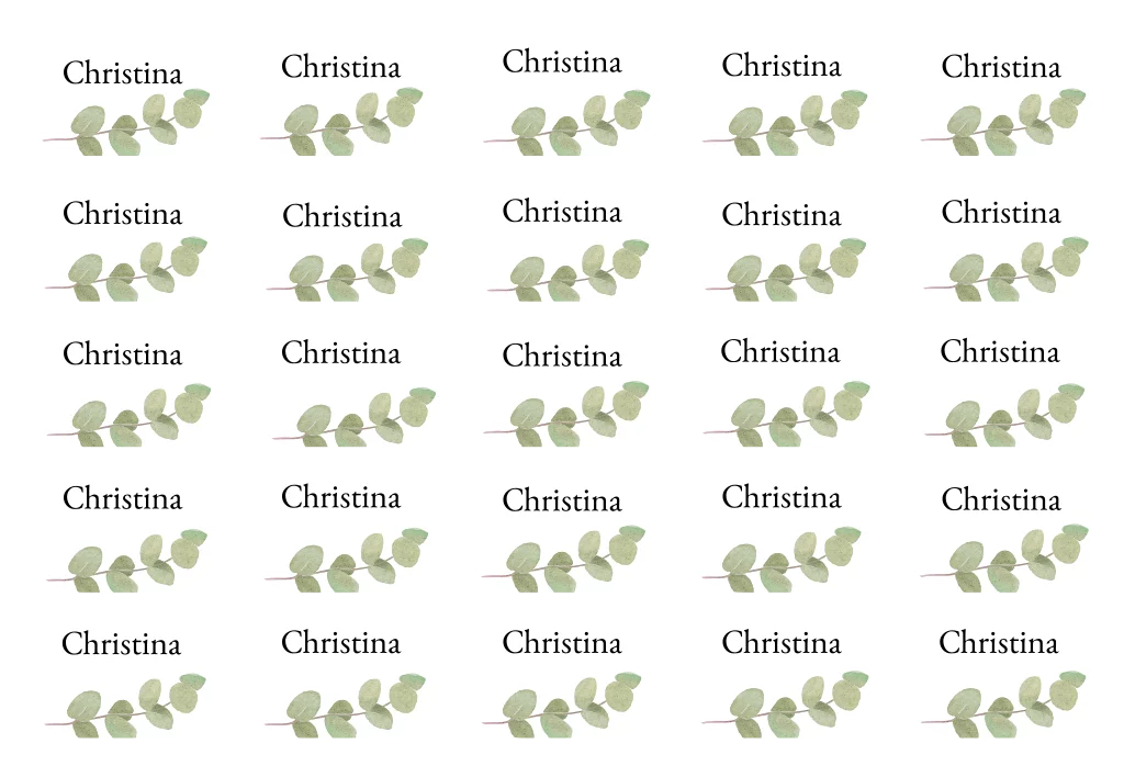 25 ovale Platzkarten in weiß mit Greenery-Zweig in grün. Die Kärtchen haben jeweils eine Größe von 8x5 cm.