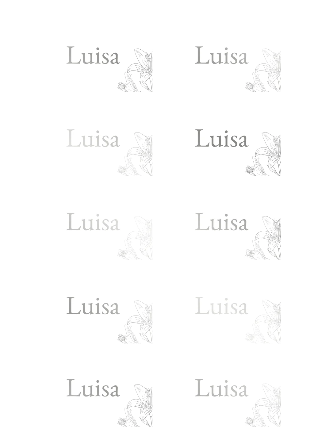 Namenskärtchen für die Hochzeitsgäste in weiß. Die Karten in jeweils 8x5 cm sind immer zu je 10 auf einem Bogen erhältlich. Die Auswahl der Bögenanzahl kann als ersten Schritt unter "Eigenschaften anpassen" gewählt werden. Die mit einer Lilie in Silberfolie veredelten Namenskarten schmücken jeden Hochzeitstisch.