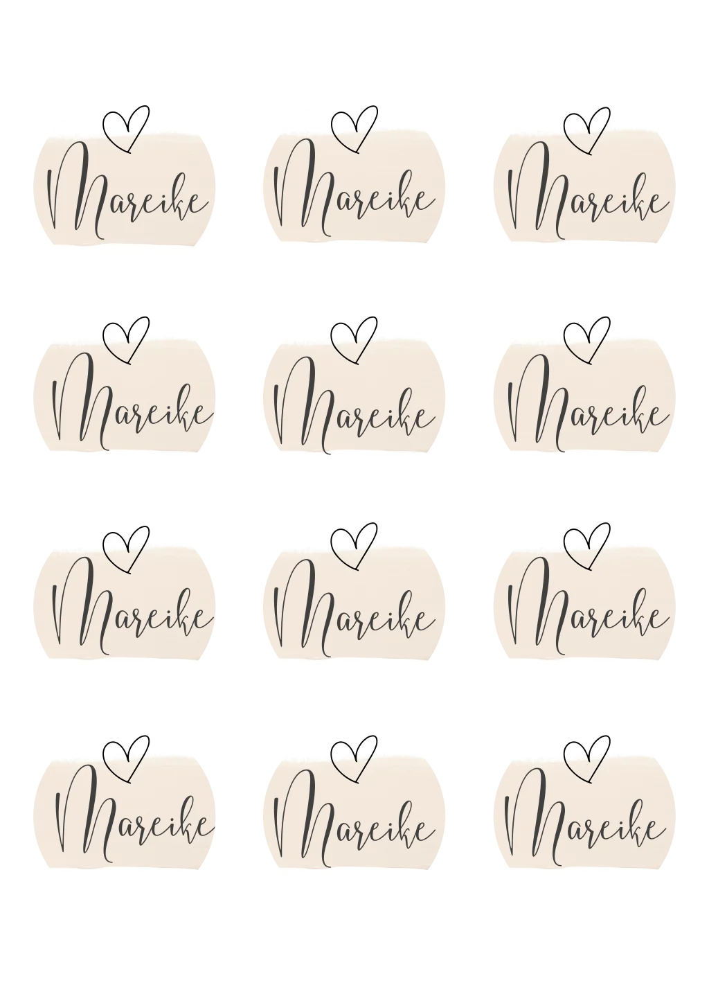 Runde Namenskarten für die Hochzeit mit Pinselstrich und Herz