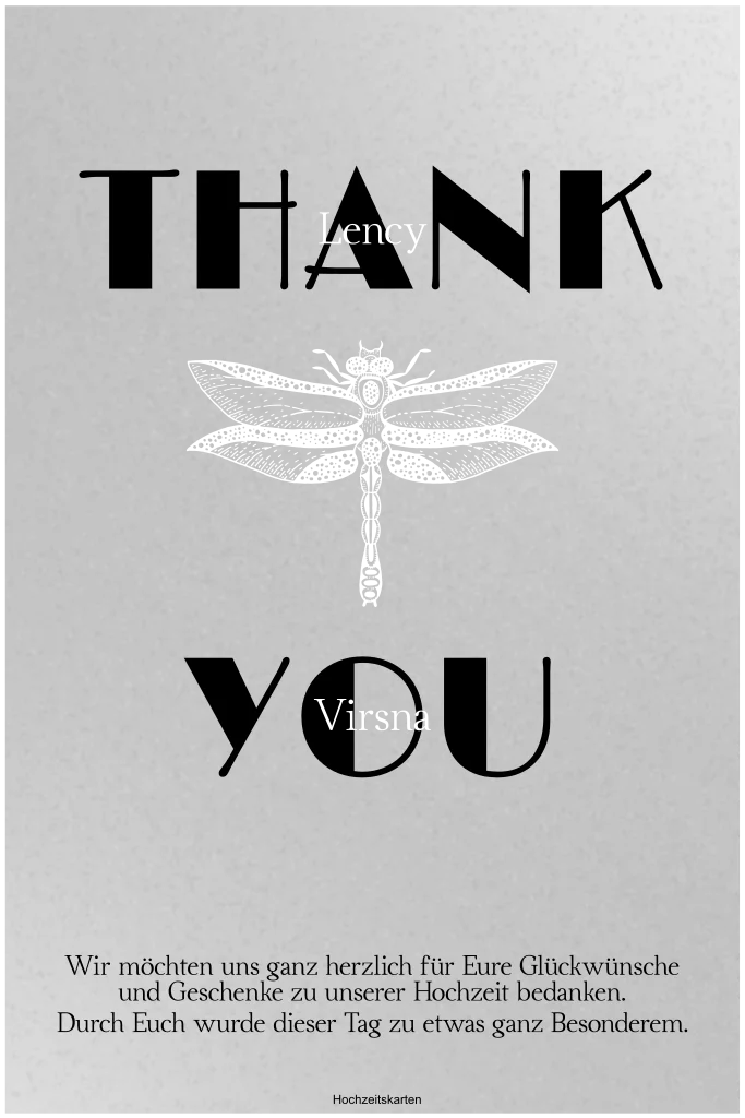 Transparente Dankeskarte zur Hochzeit mit Libelle und Goldfolie