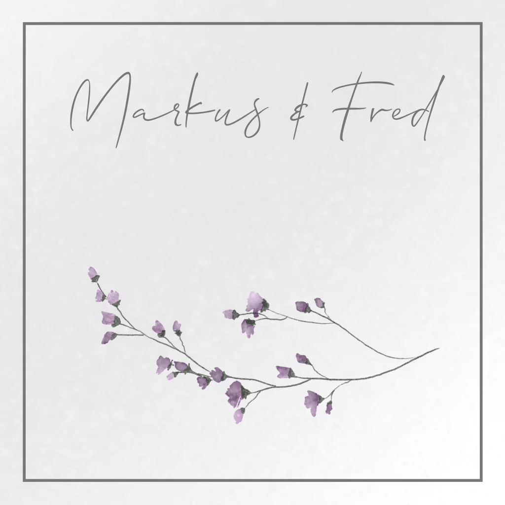 Einladungskarte auf transparenten Papier mit floralem Element in lila und Rahmen.
