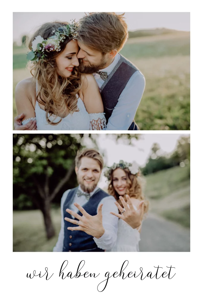 Wir-haben-geheiratet-Karte im schlichten Look mit Fotos