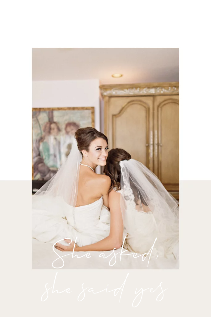 Edle "We said yes" Fotokarte in weiß und beige mit schwarzer Folie
